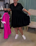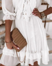 SPECIFIKATIONER Stil: Afslappet Materiale: Bomuldsblanding Kjoletype: A-linje Kjolelængde: Over knæet Halsudskæring: V-udskæring Mønstertype: Ensfarvet Ærmetype: Almindeligt ærme Ærmelængde: Halve ærmer Detaljer: Snøre op,Pjusket,Snøre Pasform: Almindelig Sæson/årstid: Forår,Sommer Lejlighed: Daglig Pakken inkluderer: 1 x Kjole STØRRELSESTABEL...