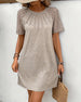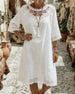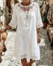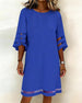 SPECIFIKATIONER Stil: Afslappet Materiale: Bomuldsblanding Kjoletype: Shift-kjole Kjolelængde: Knælængde Halsudskæring: Rund hals Mønstertype: Ensfarvet Ærmetype: Almindeligt ærme Ærmelængde: Trekvartærmet Detaljer: Udhulende,Snøre Pasform: Almindelig Sæson/årstid: Forår,Sommer Lejlighed: Daglig Pakken inkluderer: 1 x Kjole STØRRELSESTABEL (cm...