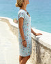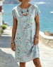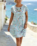 SPECIFIKATIONER Stil: Afslappet Materiale: Bomuldsblanding Kjoletype: Shift-kjole Kjolelængde: Knælængde Halsudskæring: V-udskæring Mønstertype: Tryk Ærmetype: Almindeligt ærme Ærmelængde: Kortærmet Pasform: Almindelig Sæson/årstid: Forår,Sommer Lejlighed: Daglig Pakken inkluderer: 1 x Kjole STØRRELSESTABEL (cm) Størrelse Buste Længde S 97...