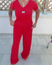 Sæt Ensfarvet Bluse & Bred Ben Bukser