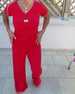 Buksedragt V-Udskæring Casual Bred Ben