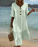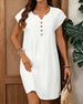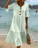 SPECIFIKATIONER Stil: Afslappet Materiale: Bomuld Kjoletype: A-linje Kjolelængde: Over knæet Halsudskæring: V-udskæring Mønstertype: Ensfarvet Ærmetype: Almindeligt ærme Ærmelængde: Kortærmet Detaljer: Knapper Pasform: Almindelig Sæson/årstid: Forår,Sommer Lejlighed: Daglig Pakken inkluderer: 1 x Kjole STØRRELSESTABEL (cm) Størrelse Buste Læ...