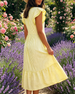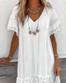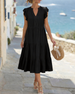 SPECIFIKATIONER Stil: Afslappet Materiale: Bomuldsblanding Kjoletype: A-linje Kjolelængde: Midi Halsudskæring: V-udskæring Mønstertype: Ensfarvet Ærmetype: Pjuskærmer Ærmelængde: Kortærmet Detaljer: Pjusket Pasform: Almindelig Sæson/årstid: Forår,Sommer Lejlighed: Daglig Pakken inkluderer: 1 x Kjole STØRRELSESTABEL (cm) Størrelse Buste Længd...
