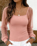 Bluse Firkantet Hals Ensfarvet Patchwork