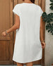 SPECIFIKATIONER Stil: Afslappet Materiale: Bomuldsblanding Kjoletype: T-shirt Kjolelængde: Knælængde Halsudskæring: V-udskæring Mønstertype: Ensfarvet Ærmetype: Sommerfugle-ærmer Ærmelængde: Kortærmet Detaljer: Snøre Pasform: Løs Sæson/årstid: Forår,Sommer Lejlighed: Daglig Pakken inkluderer: 1 x Kjole STØRRELSESTABEL (cm) Størrelse Bus...
