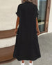 SPECIFIKATIONER Stil: Afslappet Materiale: Bomuldsblanding Kjoletype: A-linje Kjolelængde: Midi Halsudskæring: Revers Mønstertype: Ensfarvet Ærmetype: Almindeligt ærme Ærmelængde: Kortærmet Detaljer: Knapper Pasform: Løs Sæson/årstid: Forår,Sommer Lejlighed: Daglig Pakken inkluderer: 1 x Kjole STØRRELSESTABEL (cm) Størrelse Buste Længde ...