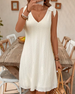 SPECIFIKATIONER Stil: Afslappet Materiale: Bomuldsblanding Kjoletype: A-linje Kjolelængde: Over knæet Halsudskæring: V-udskæring Mønstertype: Ensfarvet Ærmelængde: Uden ærmer Detaljer: Bandage,Udhulende Pasform: Almindelig Sæson/årstid: Forår,Sommer Lejlighed: Daglig Pakken inkluderer: 1 x Kjole STØRRELSESTABEL (cm) Størrelse Buste Læng...