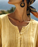 SPECIFIKATIONER Top type: Bluser Stil: Afslappet Materiale: Bomuldsblanding Lejlighed: Daglig Halsudskæring: Rund hals Mønstertype: Ensfarvet Ærmetype: Almindeligt ærme Ærmelængde: Trekvartærmet Pasform: Almindelig Sæson/årstid: Forår,Sommer Detaljer: Rynket Pakken inkluderer: 1 x Bluse STØRRELSESTABEL (cm) Størrelse Buste Længde S 92 6...