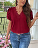 Bluse V-Udskæring Ensfarvet Pufærme