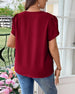 SPECIFIKATIONER Top type: Bluser Stil: Afslappet Materiale: Bomuldsblanding Lejlighed: Daglig Halsudskæring: V-udskæring Mønstertype: Ensfarvet Ærmetype: Almindeligt ærme Ærmelængde: Halve ærmer Pasform: Almindelig Sæson/årstid: Forår,Sommer Pakken inkluderer: 1 x Bluse STØRRELSESTABEL (cm) Størrelse Buste Længde S 97 65 M 101 66.5 L 1...