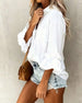 SPECIFIKATIONER Top type: Skjorte Stil: Afslappet Materiale: Bomuldsblanding Lejlighed: Daglig Halsudskæring: Krave Mønstertype: Ensfarvet Ærmetype: Pjuskærmer Ærmelængde: Langærmet Pasform: Almindelig Sæson/årstid: Forår,Sommer Detaljer: Lomme,Knapper Pakken inkluderer: 1 x Skjorte STØRRELSESTABEL (cm) Størrelse Buste Længde S 97 65 M 1...