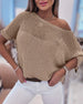 SPECIFIKATIONER Top type: Striktrøjer Stil: Afslappet Materiale: Akryl,Spandex,Polyester Lejlighed: Daglig Halsudskæring: Off-shoulder Mønstertype: Ensfarvet Ærmetype: Flagermuse-ærmer Ærmelængde: Kortærmet Pasform: Løs Sæson/årstid: Forår,Sommer Detaljer: Udhulende Pakken inkluderer: 1x Striktrøje STØRRELSESTABEL (cm) Størrelse Bu...