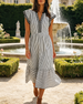 SPECIFIKATIONER Stil: Afslappet Materiale: Bomuldsblanding Kjoletype: A-linje Kjolelængde: Midi Halsudskæring: V-udskæring Mønstertype: Stribet Ærmetype: Pjuskærmer Ærmelængde: Kortærmet Detaljer: Rynket Pasform: Almindelig Sæson/årstid: Forår,Sommer Lejlighed: Daglig Pakken inkluderer: 1 x Kjole STØRRELSESTABEL (cm) Størrelse Buste Ta...