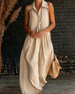 SPECIFIKATIONER Stil: Afslappet Materiale: Bomuldsblanding Kjoletype: A-linje Kjolelængde: Maxi Halsudskæring: Revers Mønstertype: Ensfarvet Ærmelængde: Uden ærmer Detaljer: Knapper Pasform: Almindelig Sæson/årstid: Forår,Sommer Lejlighed: Daglig Pakken inkluderer: 1 x Kjole STØRRELSESTABEL (cm) Størrelse Buste Længde S 92 137 M 96 138.5...