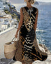 Kjole Patchwork Leopard Tryk Ærmeløs Lang