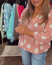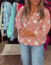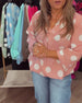 SPECIFIKATIONER Top type: Bluser Stil: Afslappet Materiale: Bomuldsblanding Lejlighed: Daglig Halsudskæring: V-udskæring Mønstertype: Prikket Ærmetype: Almindeligt ærme Ærmelængde: Trekvartærmet Pasform: Almindelig Sæson/årstid: Forår,Sommer Pakken inkluderer: 1 x Bluse STØRRELSESTABEL (cm) Størrelse Buste Længde S 97 65 M 101 66.5 L 1...
