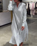 SPECIFIKATIONER Stil: Afslappet Materiale: 100% Bomuld Kjoletype: Skjorte Kjolelængde: Over knæet Halsudskæring: Revers Mønstertype: Ensfarvet Ærmetype: Drop Shoulder Ærmelængde: Langærmet Detaljer: Klippet ud Pasform: Almindelig Sæson/årstid: Forår,Efterår Lejlighed: Daglig Pakken inkluderer: 1 x Kjole STØRRELSESTABEL (cm) Størrels...