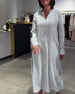 SPECIFIKATIONER Stil: Afslappet Materiale: Bomuldsblanding Kjoletype: Shift-kjole Kjolelængde: Maxi Halsudskæring: V-udskæring Mønstertype: Stribet Ærmetype: Almindeligt ærme Ærmelængde: Langærmet Detaljer: Flænge Pasform: Almindelig Sæson/årstid: Forår,Sommer Lejlighed: Daglig Pakken inkluderer: 1 x Kjole STØRRELSESTABEL (cm) Størrelse Bust...
