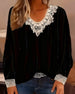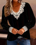 SPECIFIKATIONER Top type: Bluser Stil: Afslappet Materiale: Bomuldsblanding,Snøre Lejlighed: Daglig Halsudskæring: V-udskæring Mønstertype: Farveblok Ærmetype: Almindeligt ærme Ærmelængde: Langærmet Pasform: Almindelig Sæson/årstid: Efterår,Vinter Detaljer: Patchwork,Snøre Pakken inkluderer: 1 x Bluse STØRRELSESTABEL (cm) Størrelse Buste Læn...