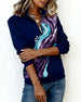 SPECIFIKATIONER Top type: Toppe Stil: Afslappet Materiale: Bomuldsblanding Lejlighed: Daglig Halsudskæring: V-udskæring Mønstertype: Farveblok,Tryk Ærmetype: Lanterneærmet Ærmelængde: Langærmet Pasform: Almindelig Sæson/årstid: Efterår,Vinter Pakken inkluderer: 1 x Top STØRRELSESTABEL (cm) Størrelse Buste Længde S 97 65 M 101 66.5 L 10...