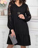SPECIFIKATIONER Stil: Afslappet Materiale: Bomuldsblanding Kjoletype: Shift-kjole Kjolelængde: Over knæet Halsudskæring: V-udskæring Mønstertype: Ensfarvet Ærmetype: Lanterneærmet Ærmelængde: Langærmet Detaljer: Patchwork,Gennemsigtig Pasform: Almindelig Sæson/årstid: Efterår,Vinter Lejlighed: Daglig Pakken inkluderer: 1 x Kjole STØRRELSESTABE...