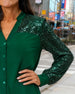 SPECIFIKATIONER Top type: Skjorte Stil: Elegant Materiale: Satin Lejlighed: Daglig Halsudskæring: Revers Mønstertype: Blade Ærmetype: Almindeligt ærme Ærmelængde: Langærmet Pasform: Almindelig Sæson/årstid: Efterår,Vinter Detaljer: Knapper Pakken inkluderer: 1 x Skjorte STØRRELSESTABEL (cm) Størrelse Buste Længde S 97 65 M 101 66.5 L 1...