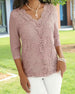 SPECIFIKATIONER Top type: Bluser Stil: Afslappet Materiale: Bomuldsblanding Lejlighed: Daglig Halsudskæring: Rund hals Mønstertype: Ensfarvet Ærmetype: Almindeligt ærme Ærmelængde: Trekvartærmet Pasform: Almindelig Sæson/årstid: Efterår,Vinter Detaljer: Pjusket Pakken inkluderer: 1 x Bluse STØRRELSESTABEL (cm) Størrelse Buste Længde S 97 6...