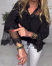 Bluse Klokkeærme Rund Hals Fin Glitter