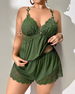 Sæt Plus Størrelse Blonder Camisol Pyjamas