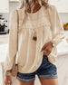 SPECIFIKATIONER Top type: Bluser Stil: Afslappet Materiale: Bomuldsblanding,Snøre Lejlighed: Daglig Halsudskæring: Rund hals Mønstertype: Ensfarvet Ærmetype: Vidærmet Ærmelængde: Langærmet Pasform: Almindelig Sæson/årstid: Efterår,Vinter Detaljer: Snøre Pakken inkluderer: 1 x Bluse STØRRELSESTABEL (cm) Størrelse Buste Længde S 92 65 M 96...