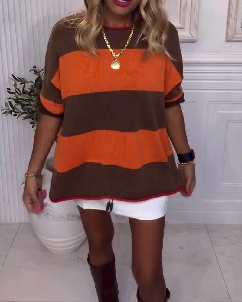 Sweater Stribet Halv Knap Drop Skulder Moderne