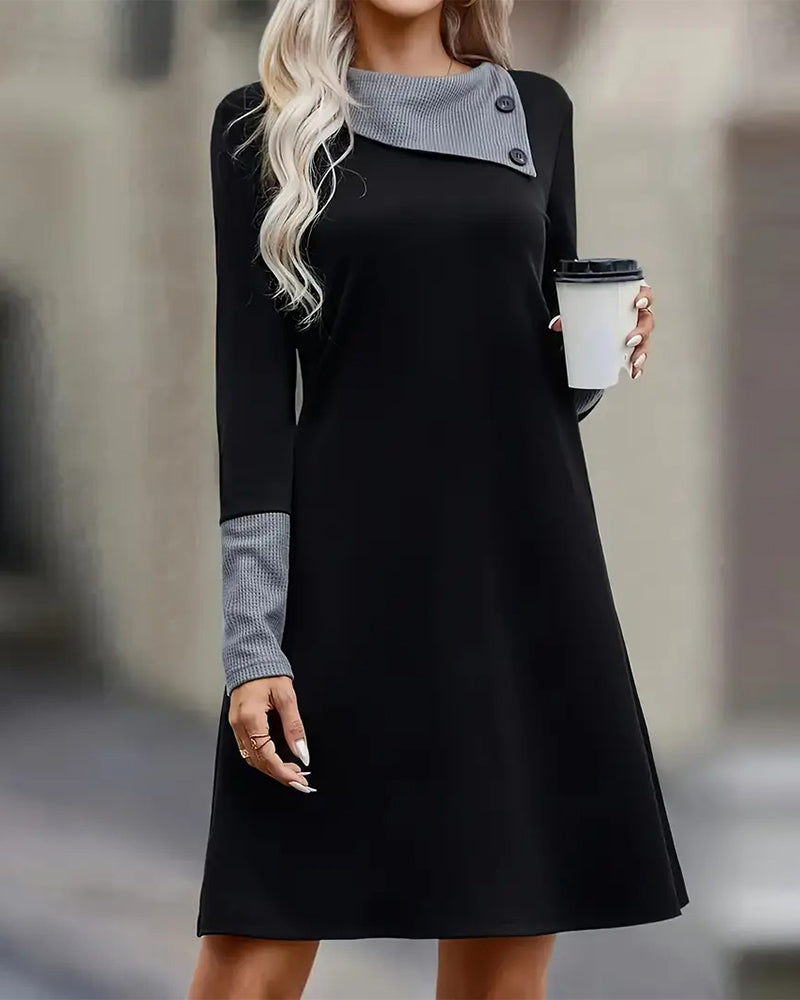 Kjole Med V-Hals, Trendig Udseende Og Farveblok Design