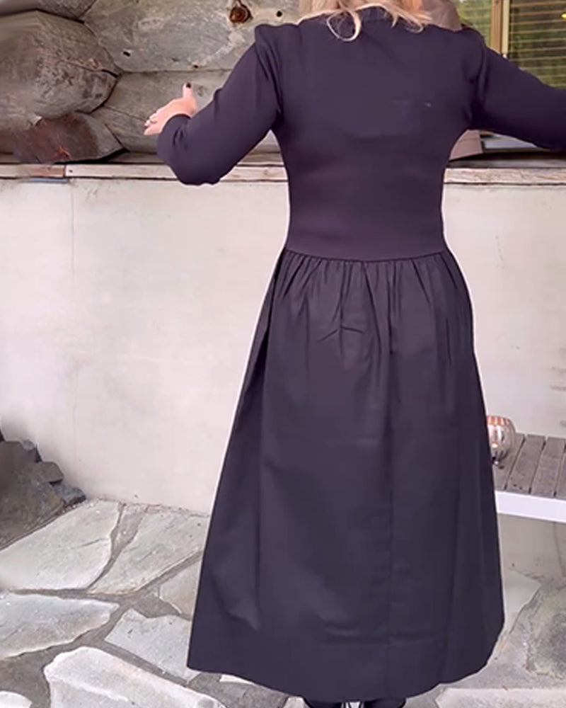Kjole Med V-Hals, Trendig Udseende Og Farveblok Design
