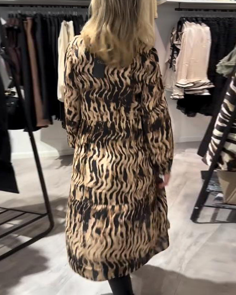 SPECIFIKATIONER Stil: Afslappet Materiale: Satin Kjoletype: Shift-kjole Kjolelængde: Midi Halsudskæring: Krave Mønstertype: Dyr Ærmetype: Almindeligt ærme Ærmelængde: Langærmet Detaljer: Lomme Pasform: Almindelig Sæson/årstid: Efterår,Vinter Lejlighed: Daglig Pakken inkluderer: 1 x Kjole STØRRELSESTABEL (cm) Størrelse Buste Længde S 97 110...