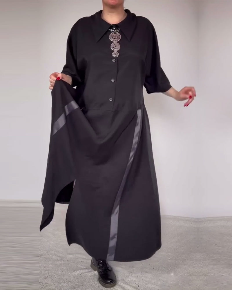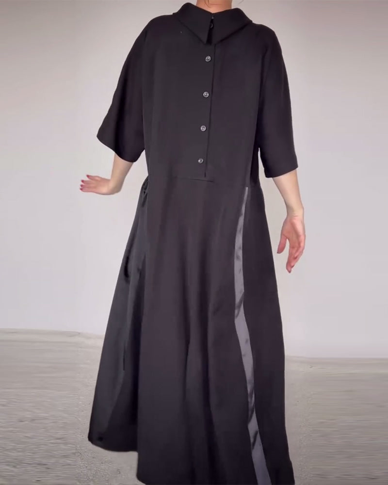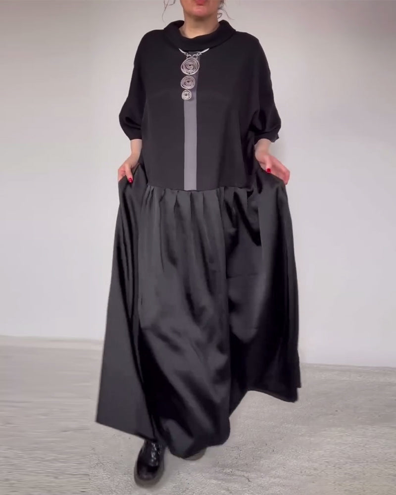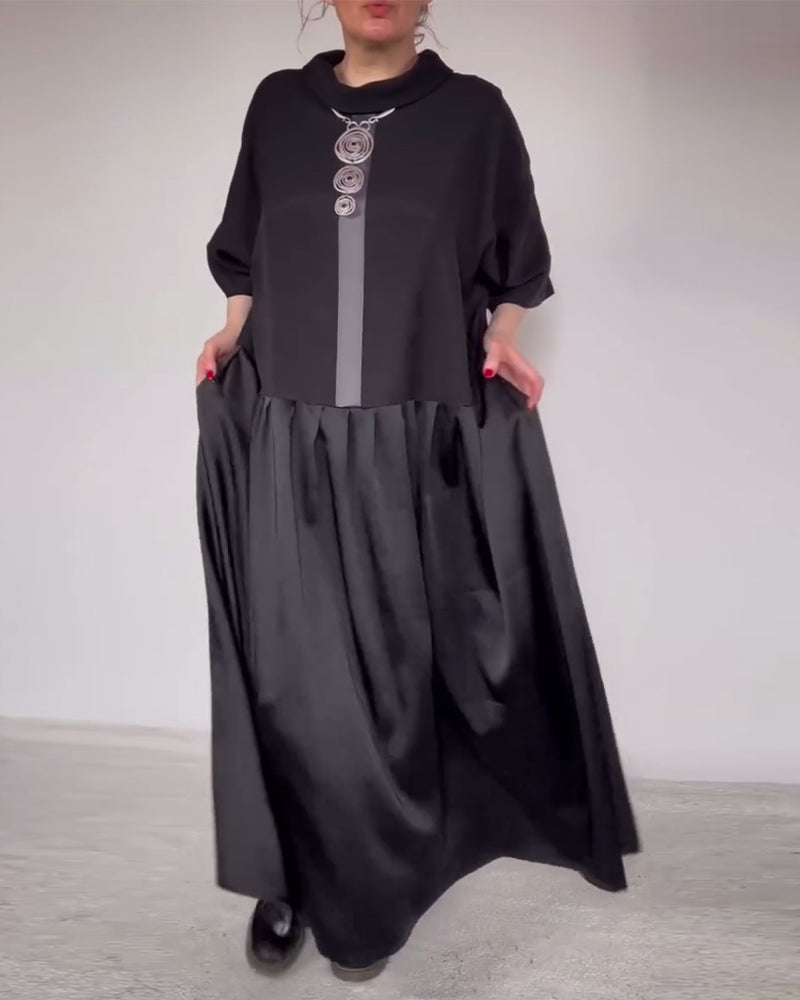 Kjole Med Trendig Lapel Og Farveblok Design