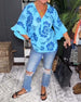 SPECIFIKATIONER Top type: Bluser Stil: Afslappet Materiale: Bomuldsblanding Lejlighed: Daglig Halsudskæring: V-udskæring Mønstertype: Tryk Ærmetype: Vidærmet Ærmelængde: Trekvartærmet Pasform: Almindelig Sæson/årstid: Forår,Sommer Pakken inkluderer: 1 x Bluse STØRRELSESTABEL (cm) Størrelse Buste Længde S 104 65 M 108 66.5 L 112 68...