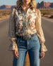 SPECIFIKATIONER Top type: Skjorte Stil: Afslappet Materiale: Bomuldsblanding Lejlighed: Daglig Halsudskæring: Revers Mønstertype: Tryk Ærmetype: Lanterneærmet Ærmelængde: Langærmet Pasform: Almindelig Sæson/årstid: Forår,Sommer Detaljer: Lomme Pakken inkluderer: 1 x Skjorte STØRRELSESTABEL (cm) Størrelse Buste Længde S 92 68 M 96 69.5 ...
