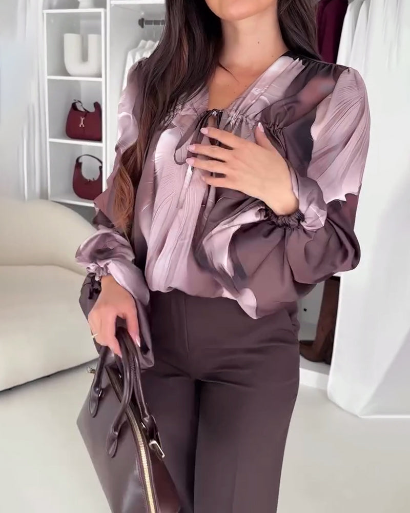 Bluse Båndkrave Satin Langærmede