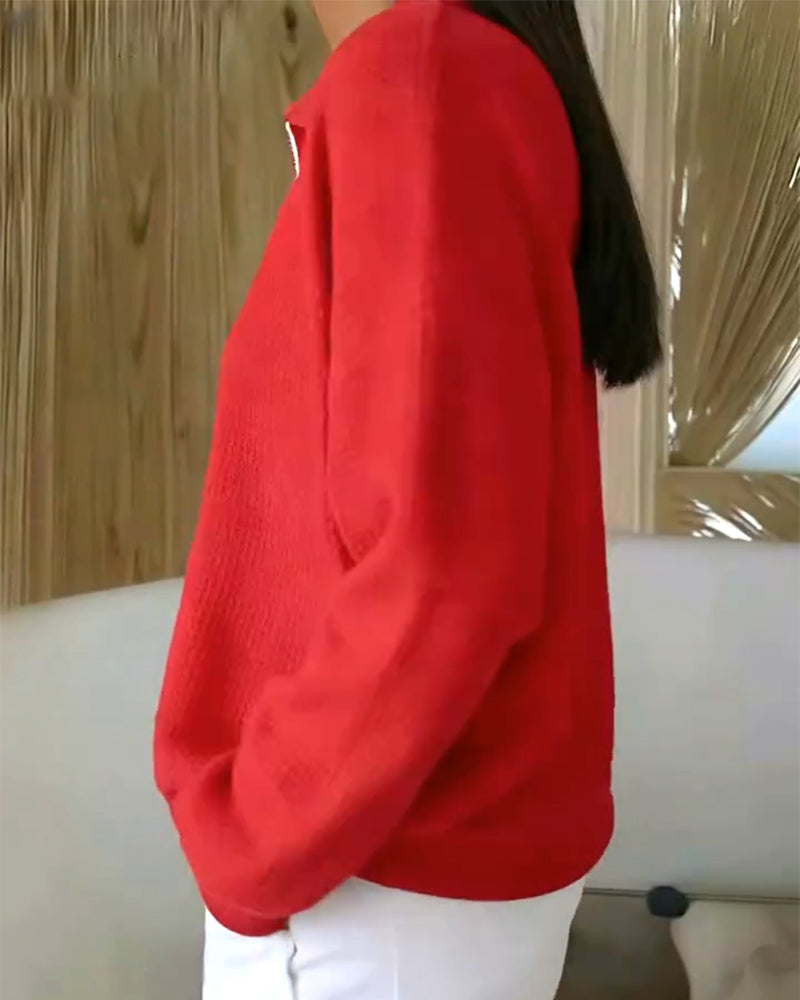 SPECIFIKATIONER Top type: Sweatshirts Stil: Afslappet Materiale: Bomuldsblanding Lejlighed: Daglig Halsudskæring: Revers Mønstertype: Ensfarvet Ærmetype: Almindeligt ærme Ærmelængde: Langærmet Pasform: Almindelig Sæson/årstid: Efterår,Vinter Detaljer: Knapper Pakken inkluderer: 1 x Sweatshirt STØRRELSESTABEL (cm) Størrelse Buste Længde S 9...