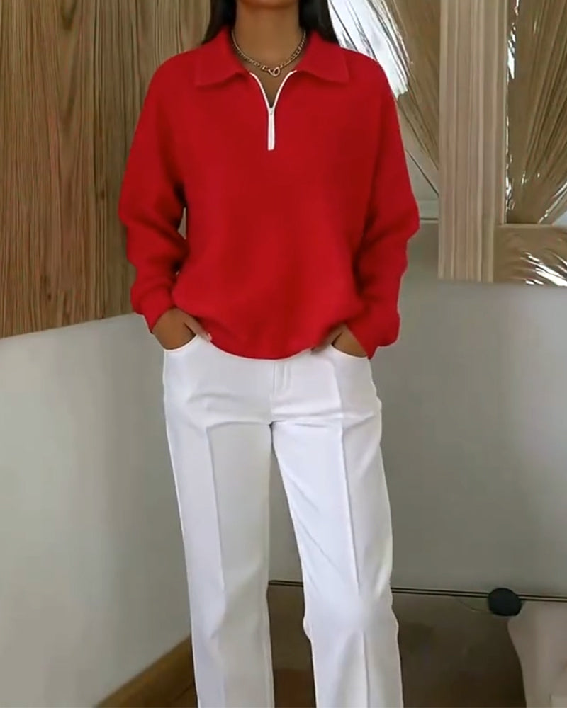 Moderne Casual Langærmet Sweatshirt I Ensfarvet