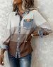 Bluse Ensfarvet Patchwork Langærmet