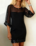 Kjole Ensfarvet Patchwork Skinnende Rund Halsudskæring