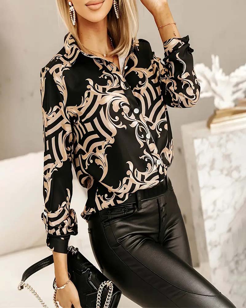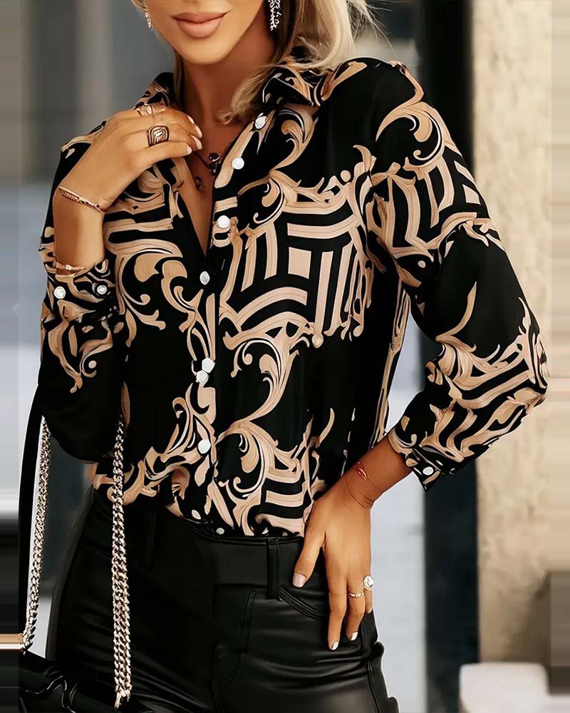 Modern Løstsiddende Langærmet Bluse Med Tryk
