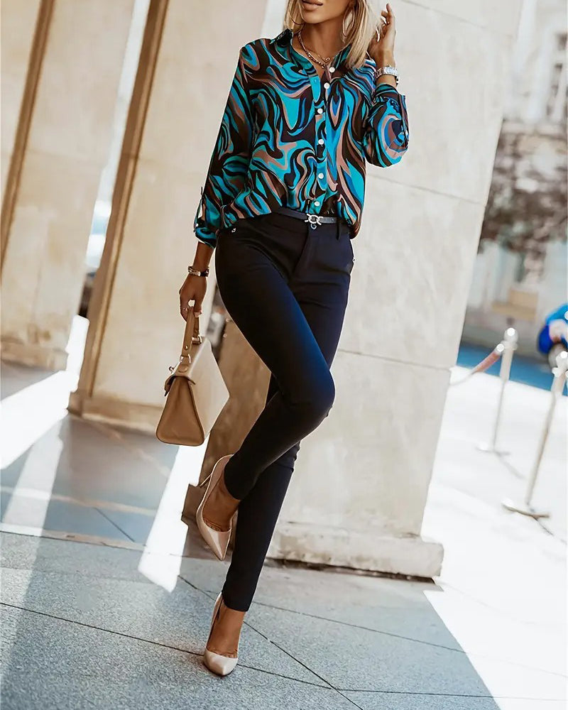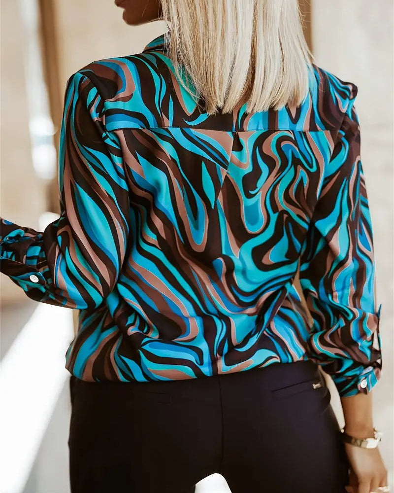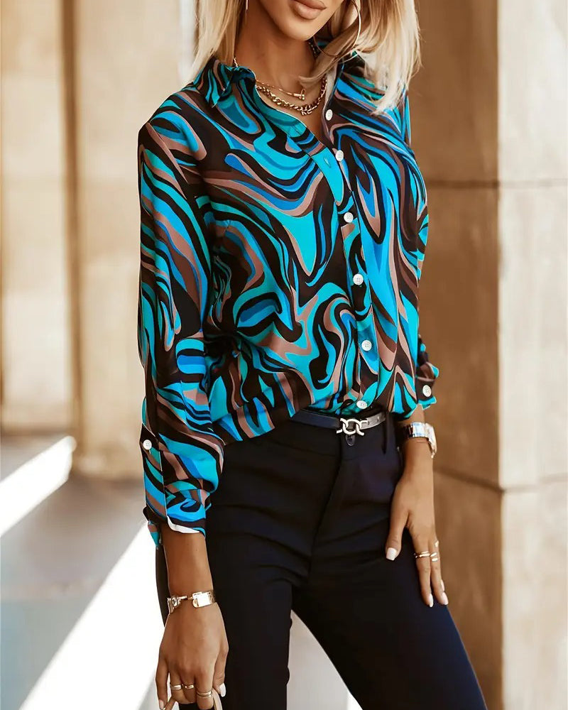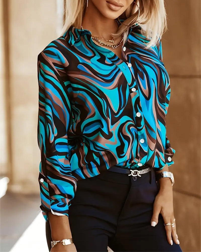 Modern Løstsiddende Langærmet Bluse Med Tryk