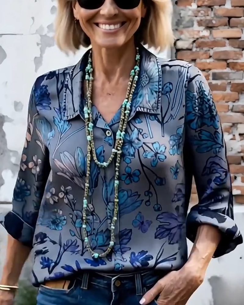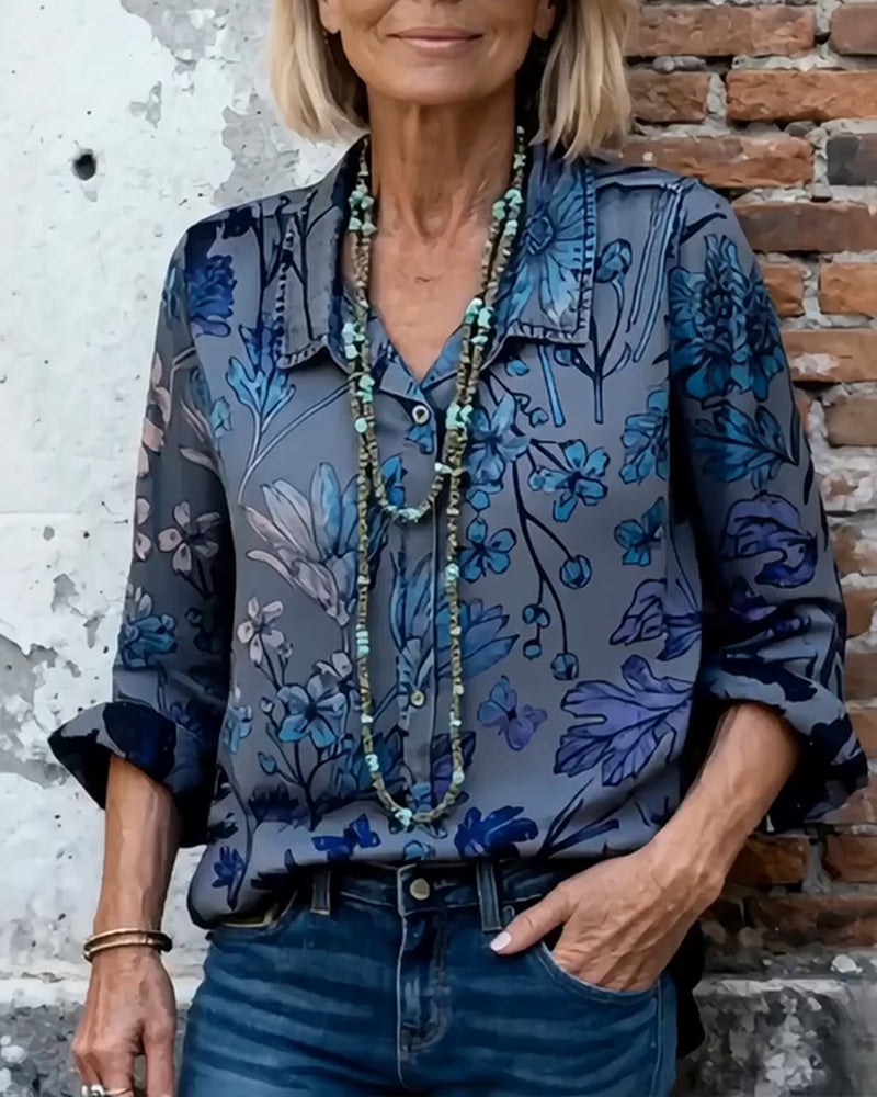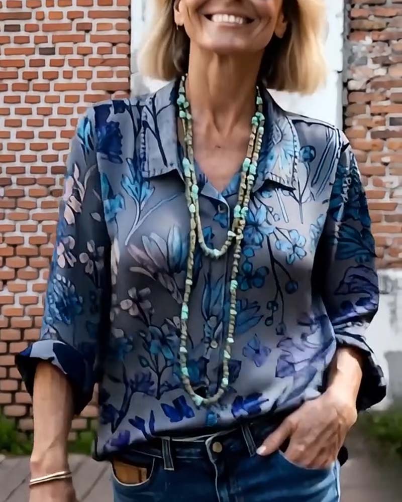 Modern Løstsiddende Langærmet Bluse Med Tryk