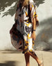SPECIFIKATIONER Stil: Afslappet Materiale: 100% Polyester Kjoletype: Shift-kjole Kjolelængde: Midi Halsudskæring: Rund hals Mønstertype: Tryk Ærmetype: Almindeligt ærme Ærmelængde: Kortærmet Pasform: Løs Sæson/årstid: Forår, Sommer, Efterår Lejlighed: Daglig Pakken inkluderer: 1 x Kjole STØRRELSESTABEL (cm) Størrelse Buste Læng...