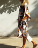 SPECIFIKATIONER Stil: Afslappet, Elegant Materiale: Bomuldsblanding Kjoletype: A-linje Kjolelængde: Over knæet Halsudskæring: V-udskæring Mønstertype: Tryk Ærmetype: Almindeligt ærme Ærmelængde: Trekvartærmet Detaljer: Lomme Pasform: Almindelig Sæson/årstid: Forår, Sommer Lejlighed: Daglig, Ferie Pakken inkluderer: 1 x Kjole STØRRELSESTABE...