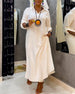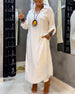 SPECIFIKATIONER Stil: Afslappet Materiale: Bomuld Kjoletype: Skjorte Kjolelængde: Knælængde Halsudskæring: V-udskæring Mønstertype: Ensfarvet Ærmetype: Pjuskærmer Ærmelængde: Trekvartærmet Detaljer: Knapper, Udhulende Pasform: Almindelig Sæson/årstid: Forår, Sommer, Efterår Lejlighed: Daglig Pakken inkluderer: 1 x Kjole STØRRELSESBORD(cm) ...