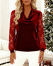 SPECIFIKATIONER Top type: Toppe Stil: Afslappet Materiale: Snøre,Fløjl Lejlighed: Daglig Halsudskæring: Draperet Krave Mønstertype: Ensfarvet Ærmetype: Almindeligt ærme Ærmelængde: Langærmet Pasform: Almindelig Sæson/årstid: Efterår,Vinter Pakken inkluderer: 1 x Top STØRRELSESTABEL (cm) Størrelse Buste Længde S 92 65 M 96 66.5 L 100 68...