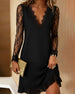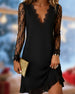 Kjole Med V-Hals Design, Tüllstoff Och Patchwork Detalj